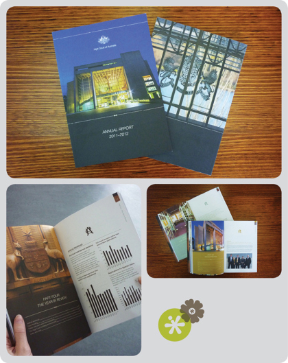 High Court of Australia Annual Report: B5, printed in full colour and with bleed. Print managed by us. We were lucky enough to have a tour of the iconic High Court of Australia building and take some amazing pics. Did you know they have a garden on top of this place!